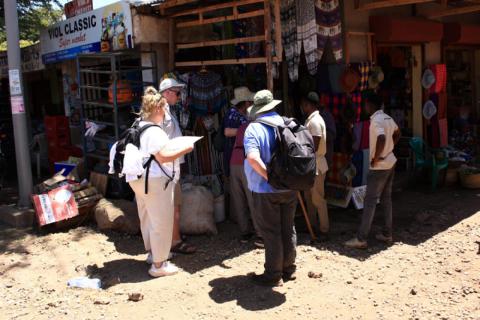Um ca. 8 Uhr Abfahrt zur Besichtigung des Dorfes Mto Wa Mbu In Begleitung eines einheimischen Guides besuchten wir eine Bananenplantage inklusvie einer Kostprobe des lokal produzierten Bananenbiers. Auf der Bananenplantage erlebten wir auch ein traditionell zubereitetes, schmackhaftes Mittagessen.